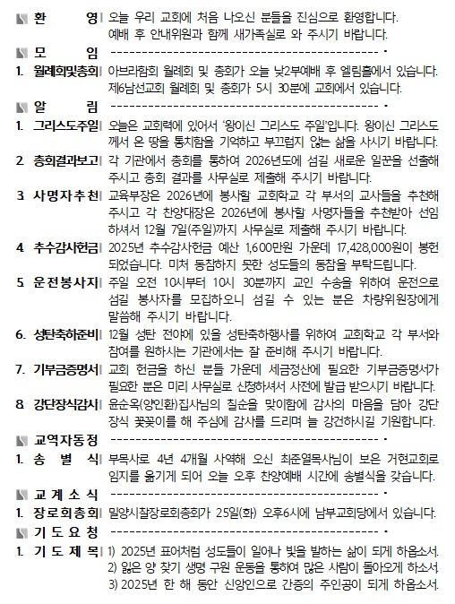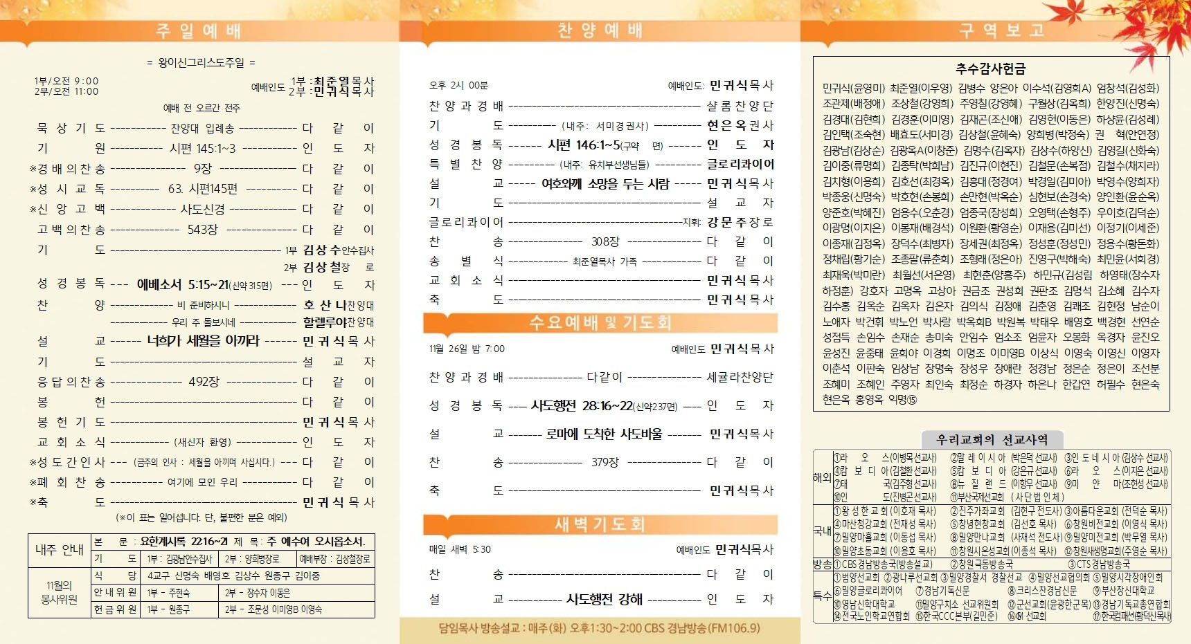 11¿ù 23ÀÏ ±³È¸¼Ò½Ä