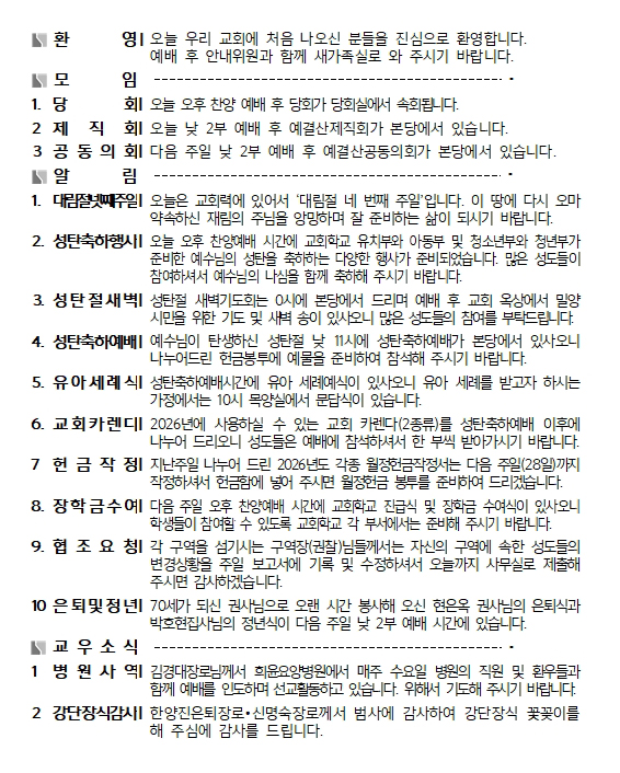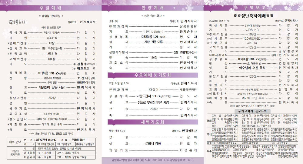 12¿ù 21ÀÏ ±³È¸¼Ò½Ä