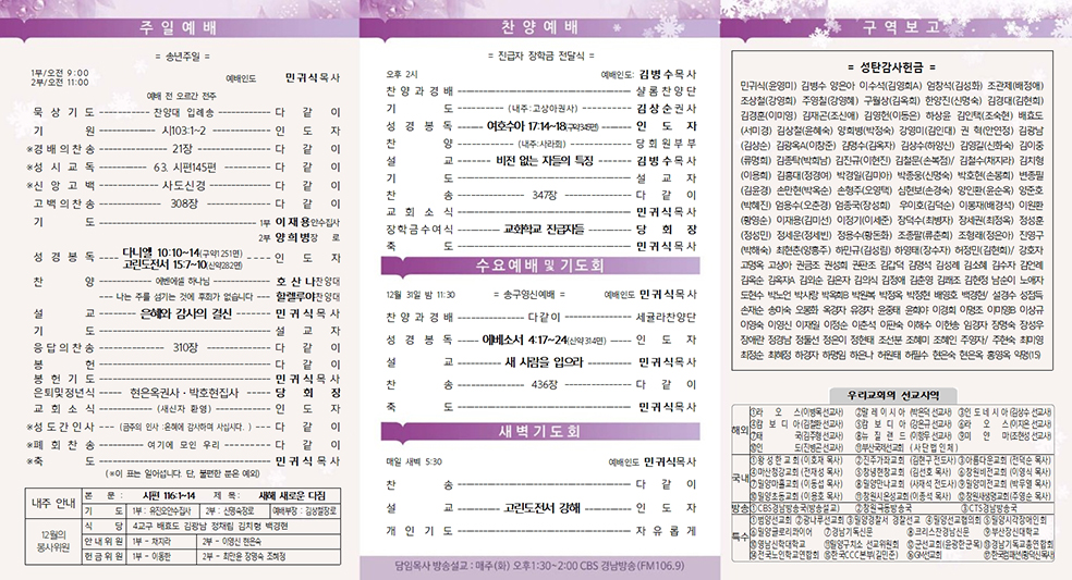 12¿ù 28ÀÏ ±³È¸¼Ò½Ä